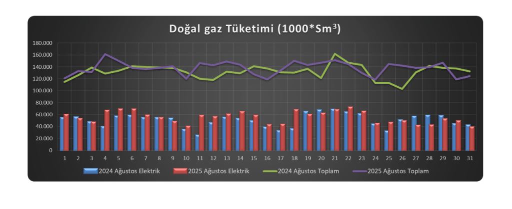 [12] 2025 yılı Ağustos ayı Elektrik üretimi için tüketilen toplam doğal gaz miktarı, T.C. Enerji ve Tabii Kaynaklar Bakanlığı Enerji İşleri Genel Müdürlüğü raporlarından alınmaktadır.