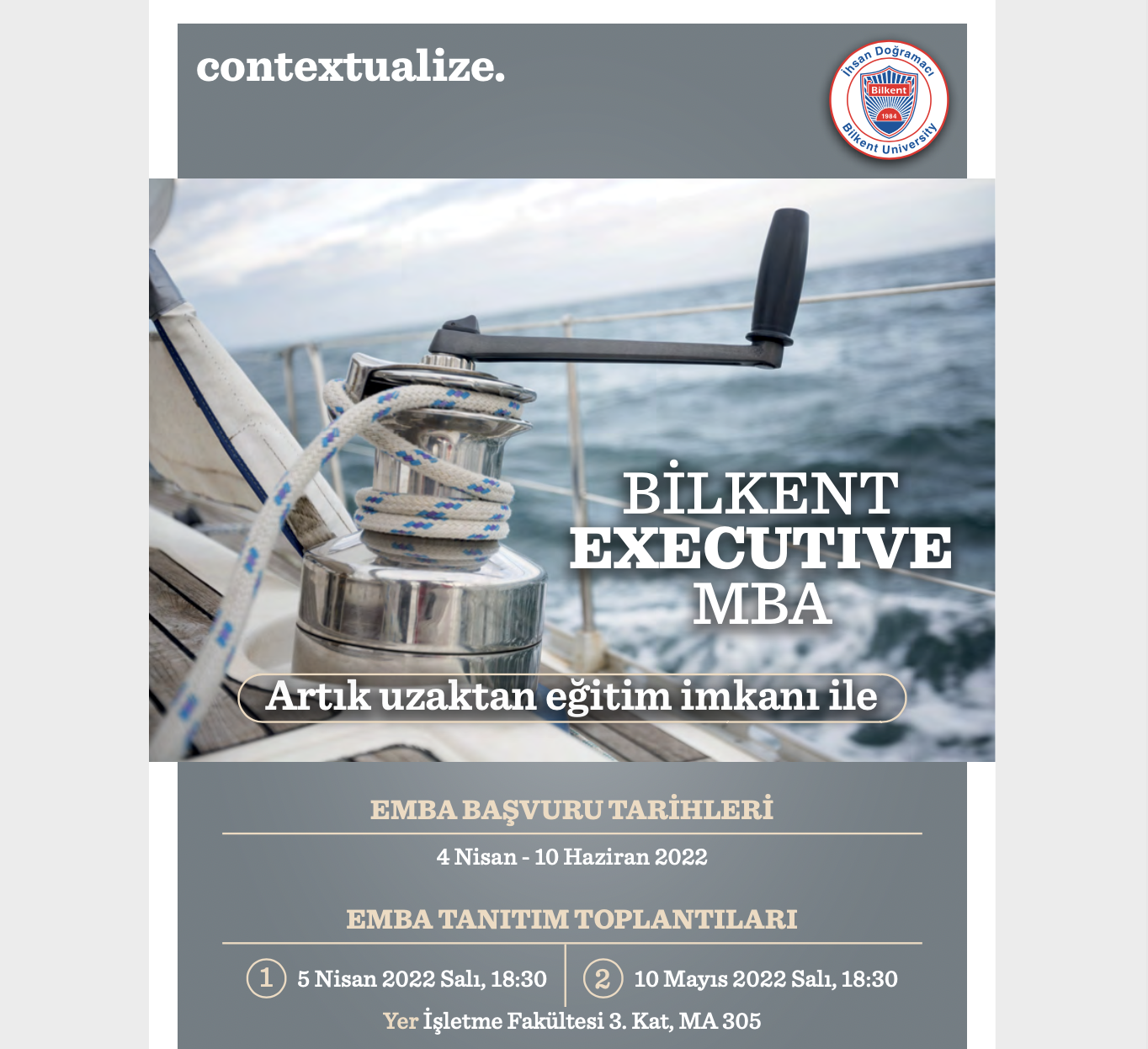Bilkent EMBA ile ilgili ayrıntılı bilgiye buradan ulaşabilirsiniz.