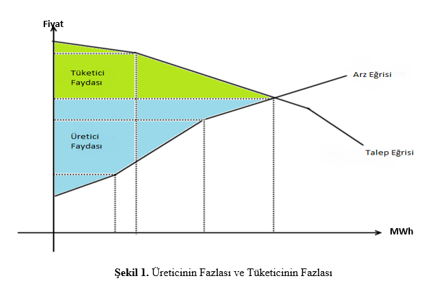 Örneklemek gerekir ise mesela 100 TL/MWh PTF’nin çıktığı bir saatte 60 TL/MWh’den 200 MWh satış yapmak isteyen bir üretici (100-60)X200=8000 TL istediğinin üzerinde kazanç elde etmiş iken, aynı şekilde 150 TL/MWh’den 70 MWh alış yapmak isteyen bir tüketici (150-100)X70= 3500 TL daha az ödemiş bulunmaktadır. Aslında etkin bir piyasada teklifler marjinal maliyetler üzerinden verildiğinden aynı zamanda bu kazançlar üretici ve tüketicilerin karına tekabül etmektedir. Bütün üretici ve tüketicileri bu şekilde topladığımızda ise piyasanın elde ettiği toplam kazancı yani Günlük Toplam Fazlayı (Social Welfare) elde etmekteyiz.