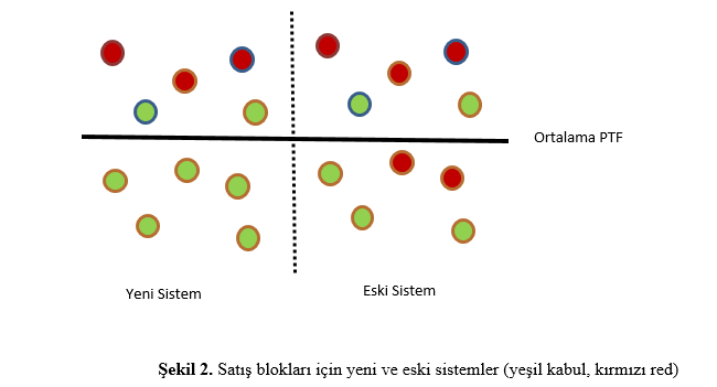 Önceki modelin aksine artık ilgili ortalama fiyatın altındaki satış blokuna ve üstündeki alış blokuna kabul garantisi geldiğini görmekteyiz. Eski modelde ortalama fiyatın altındaki bir satış bloku reddedilebilirken üstündeki bir blok da fark tutarı ödenerek kabul edilebiliyordu. Bu durum, pek çok tartışmayı da beraberinde getiriyordu. Bunun yerine artık fiyata duyarlı kabul garantisi ile bu sorunun üstesinden gelindiği anlaşılmaktadır. (Kabul garantisinin dışında kalan istisnalar ise arz veya talep yetersizliği ile ilişkilendirilmiş bloklardır.) Şekil 2, yeni ve eski sistemleri satış blokları özelinde göstermektedir.