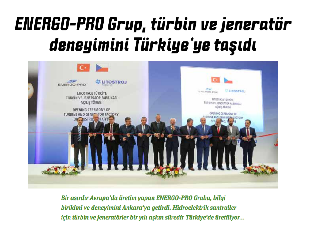 Türkiye‘de hidroelektrik santraller için türbin, jeneratör ve diğer ekipmanları üretmeye başlayan ilk yabancı yatırım şirketi ENERGO-PRO Grup, Ankara yakınlarındaki organize sanayi bölgesinde bulunan fabrikası Litostroj Türkiye‘de geçtiğimiz yıl üretime başladı. ENERGO-PRO CEO‘su Pavel Váňa, Çekya‘da bir asırdan fazla süredir hidrolik türbin üretme geleneğine dikkat çekerek hidroelektrik santralleri için geleneksel türbin üretiminde Orta Avrupa‘daki bilgi birikimini Türkiye‘ye getirdiklerini söyledi.