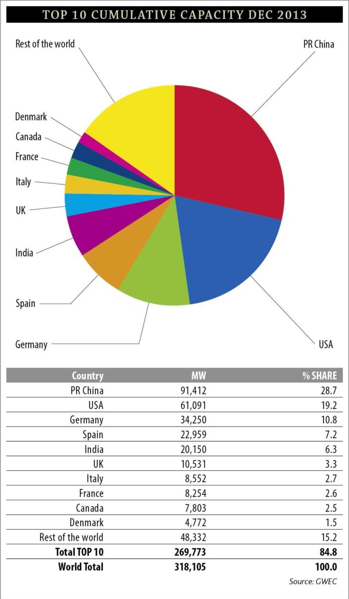 Kümülatif rüzgar enerjisi kapasitesinde hangi ülkeler ne kadar pay alıyor? -Which countries receive which portion of share of cumulative wind power capacity?