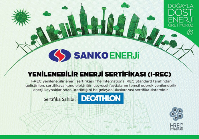 Decathlon Türkiye, Türkiye’deki tüm mağazaları için Sanko Enerji Grubundan almış olduğu yenilenebilir enerji sertifikası I-REC ile birlikte, tükettiği elektriği yenilenebilir enerji kaynaklarından karşılayarak sürdürülebilirlik konusundaki hedeflerine bir adım daha yaklaştı.