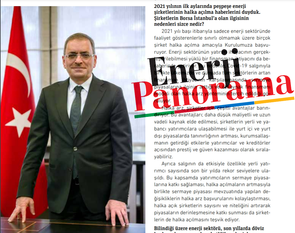 SPK Başkanı Ali Fuat Taşkesenlioğlu, 2021 yılında halka açılmak için başvuruda bulunan enerji şirketi sayısının 5 olduğunu söyledi. Yılsonunda Borsa İstanbul’da işlem gören enerji şirketi sayısının 30’a çıkabileceğini söyleyen Taşkesenlioğlu, şirket hissedarlarına ve potansiyel yatırımcılara önemli ipuçları verdi…