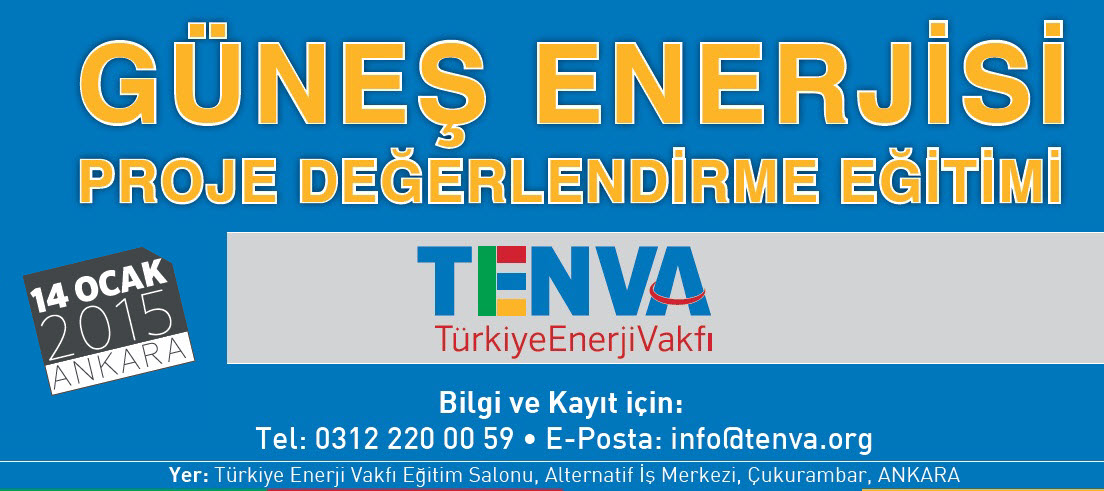 Türkiye Enerji Vakfı (TENVA), önlisans yarışma programı öncesinde “Güneş Enerjisi Projeleri Değerlendirme Eğitimi” düzenliyor. Uzman isimlerin önderliğinde hazırlanan seminer programı, 14 Ocak 2015 tarihinde Ankara’da gerçekleşecek.