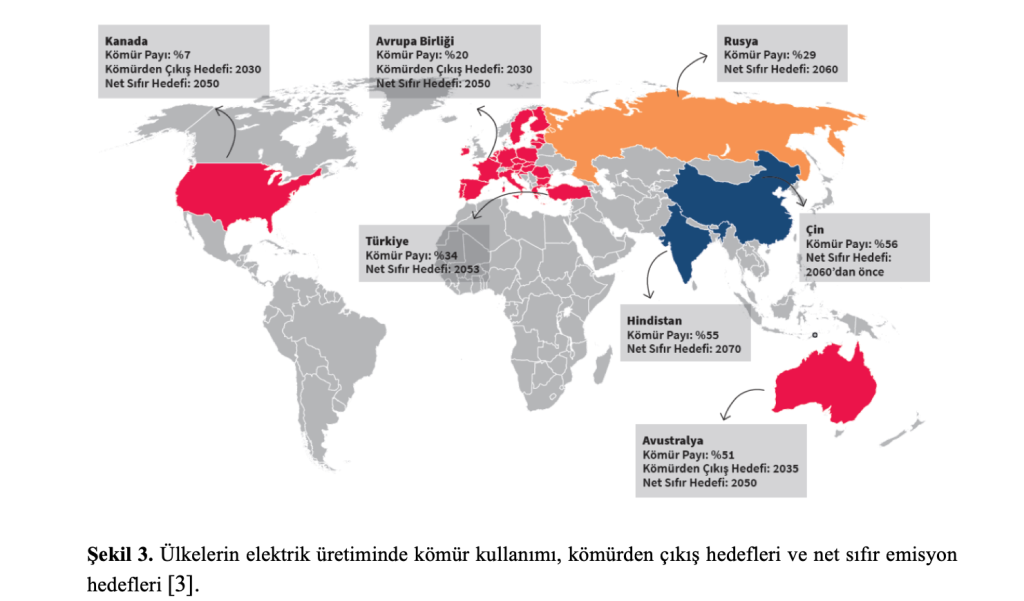 Önemli miktarda işletilebilir kömür rezervleri olan Almanya, Polonya ve Çekya gibi AB ülkeleri ile Rusya, Çin, Hindistan gibi diğer önemli dünya ülkeleri kömürden çıkış tarihlerini ya belirlememekte ya da çok ileri tarihleri açıklamaktadırlar (Şekil 1).
