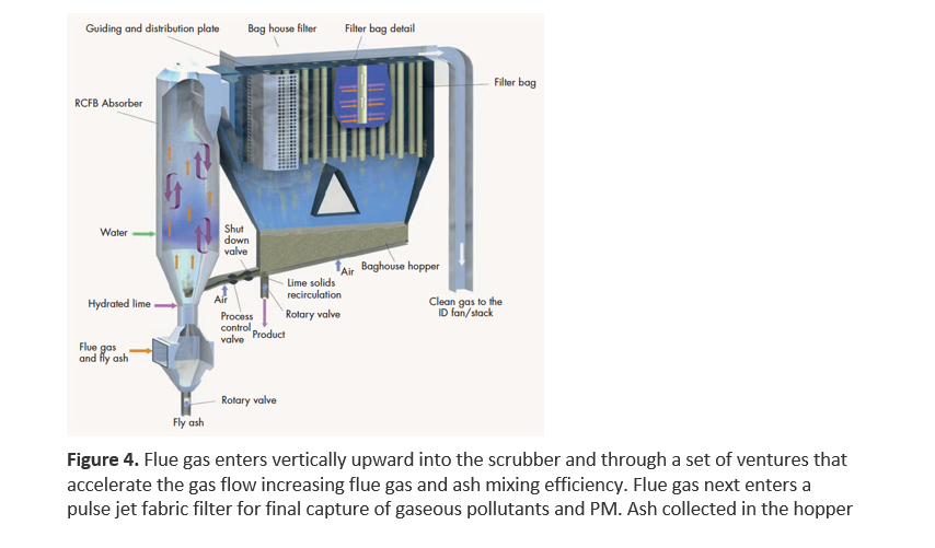 For this flexibility, a CFB “polishing” scrubber (CFBS), was added behind the CFB boiler for the Soma Kolin plant (Figure 4). This will allow the CFB ash to be used as a reagent in the CFBS to reduce emissions while also reducing the use of expensive reagents such as hydrated lime. Two ash hydrators on site, will condition the recycled fly ash before injection into the absorber. The CFBS will also capture HCl, HF, Hg, and NH3 so the plant will be able to comply with the EU’s strict BREF limits providing multi-pollutant emission control very economically.